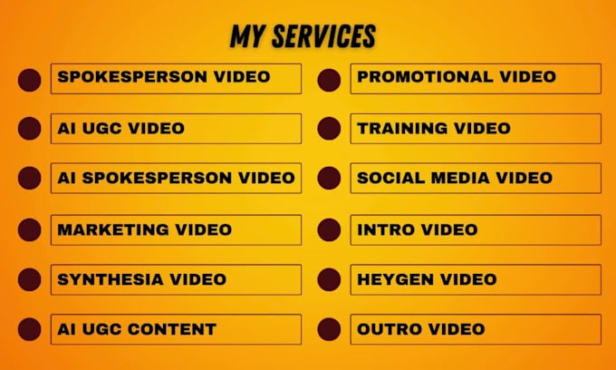 I offer services for generating AI-driven user-generated content videos, including advertisements and TikTok content, utilizing platforms like HeyGen and Synthesia