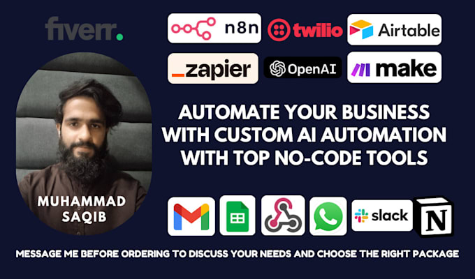 I create intelligent automation solutions utilizing n8n, Airtable, Twilio, and OpenAI (ChatGPT) to optimize business processes. I can assist with automating tasks and conserving time, covering everything from data synchronization and AI-driven messaging to integrations across multiple applications.