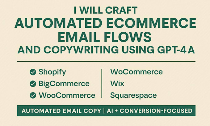 I will develop highly effective, automated ecommerce email sequences utilizing GPT-4 AI technology, aimed at increasing your income, improving customer loyalty, and converting occasional shoppers into dedicated patrons.