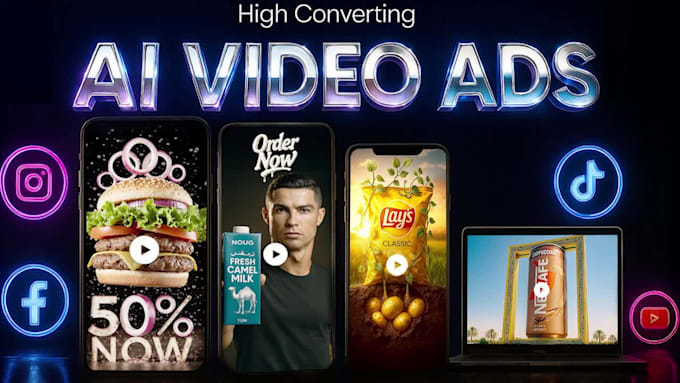 Important: Pleasemessage me before placing an order so I can understand your idea, share sample work, and recommend the best package for your needs. Looking for AI product ads or AI commercial videos that make a brand stand out on TikTok, Instagram, YouTube, or Facebook? You are in the right place! I create cinematic AI video ads and product showcases with VFX, CGI, and creative storytelling. What I Offer: ️ AI product ads & commercials eye-catching, high-engagement ads UGC-style AI ads ️ Cinematic product showcases with VFX, CGI, and storytelling ️ Full brand commercials complete script, voiceover & music ️ Optimized for TikTok, Instagram, Facebook & YouTube. Let’s bring a vision to life with powerful AI commercial ads and social media video ads that grow a brand and drive results.