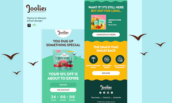 • Modifiable template for Mailchimp, Klaviyo, Hubspot, or bespoke HTML