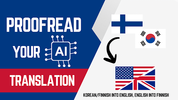 I offer a review service for AI-generated translations from Korean or Finnish into English, and also from English into Finnish, focusing on accuracy, tone, cultural appropriateness, and providing constructive feedback. I can handle various text types, including marketing materials, presentations, articles, and books, though scientific texts may require a longer turnaround due to their complexity. Before submitting files, please specify the text type (e.g., article, advertisement) to inform the required tone, highlight any specific areas needing attention (e.g., vocabulary emphasis, translation style), and include the original source text for accuracy verification. The standard rate covers 500 words or one page formatted in single-space, 12pt Times New Roman on A4 paper.