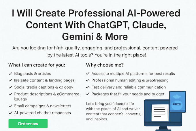 I focus on producing content enhanced by AI, utilizing premier platforms like ChatGPT (OpenAI), Claude (Anthropic), Gemini (Google), Copilot (Microsoft), Perplexity AI, Jasper Chat, and Copy.ai. By combining the efficiency of AI with meticulous human refinement, the resulting content is: