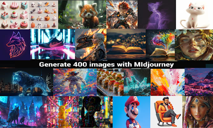 This service provides a large quantity of AI-generated images customized to your needs. You can supply your own prompts, or I can develop prompts or word descriptions based on your concept, though this is limited within this offering.