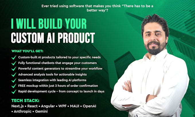 If you aim to incorporate GPT-4o, Claude, Gemini, MidJourney, or other AI models, I will assist you in launching rapidly with a clean architecture and impressive user interface.