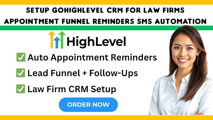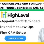 I offer configuration of a customer relationship management system, specifically GoHighLevel, tailored for legal practices, encompassing appointment funnels, reminders, and automated SMS communication
