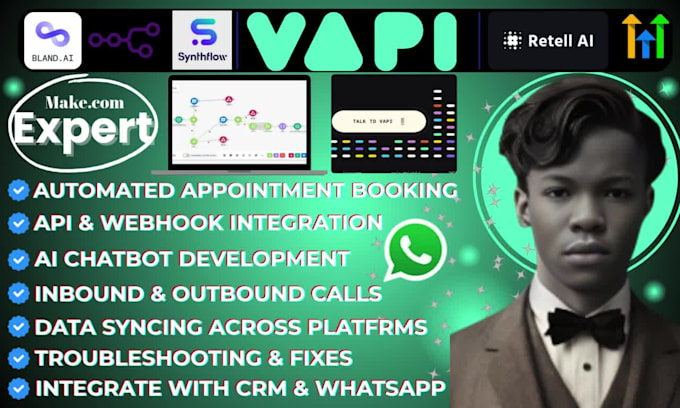 I develop intelligent AI voice and chatbot agents utilizing Vapi AI, ElevenLabs, Bland AI, and Retell AI.